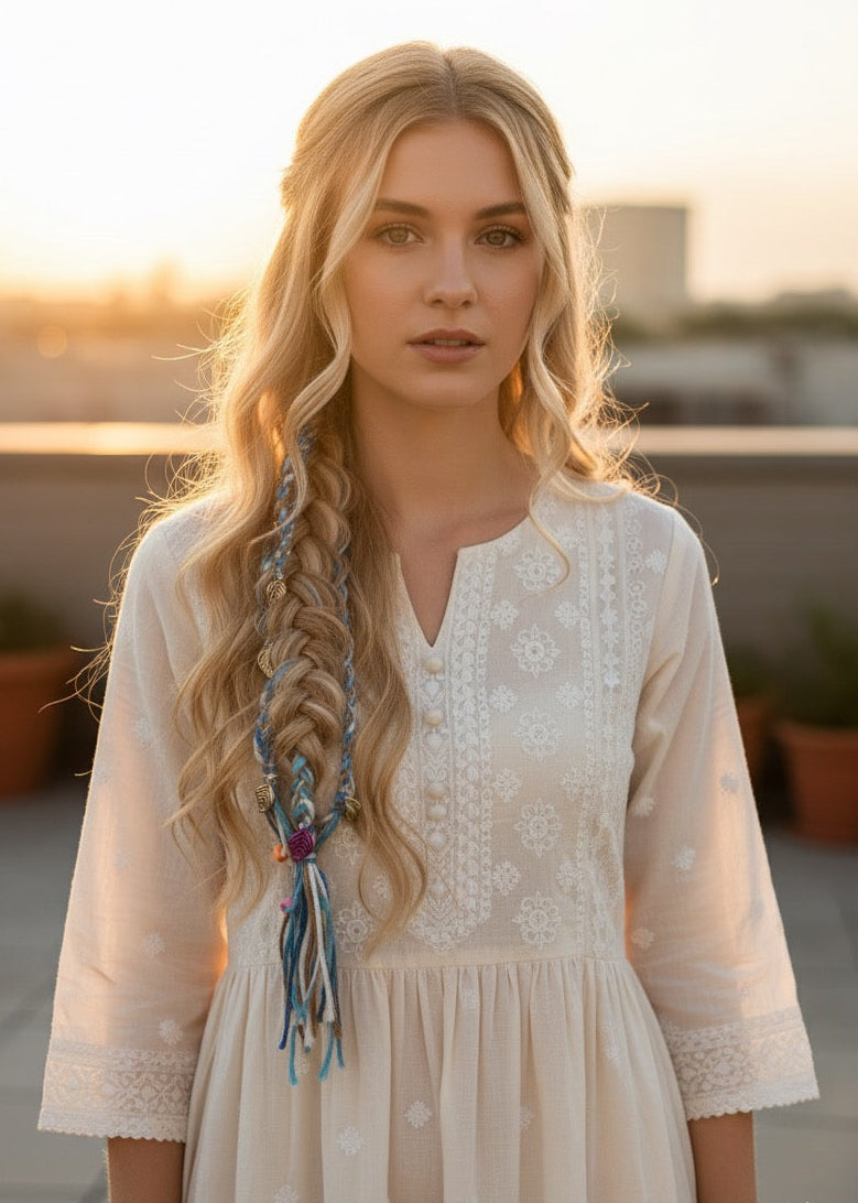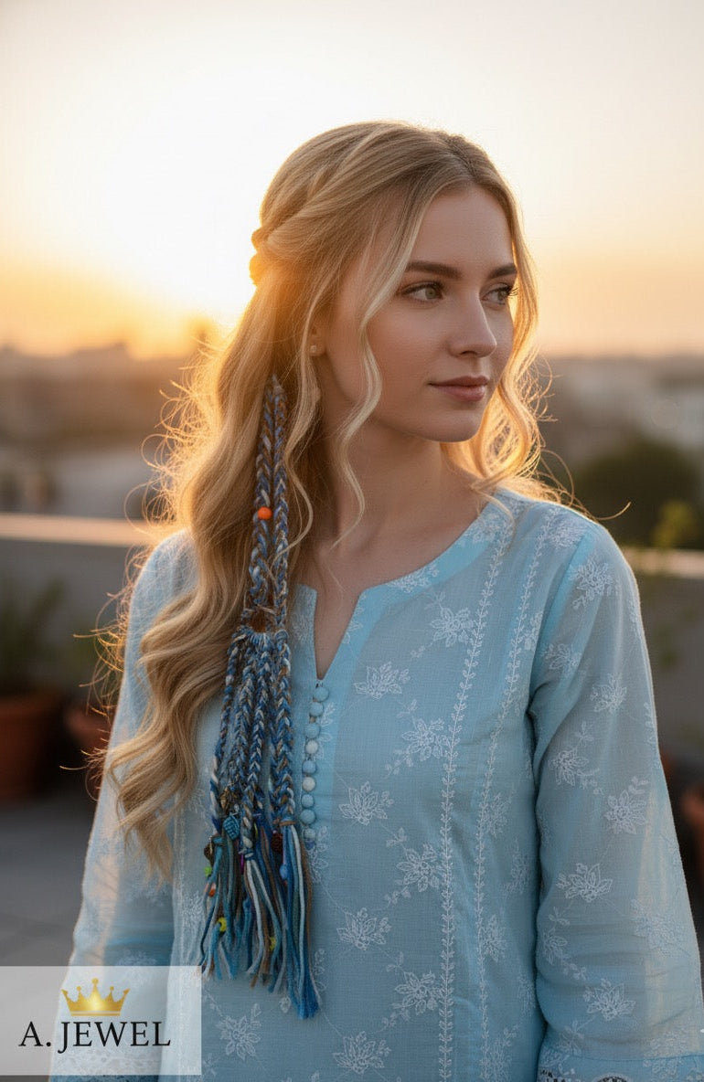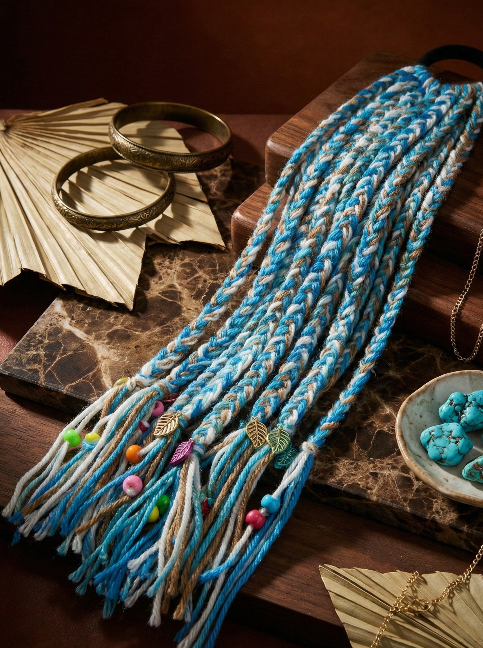 Discover our unique collection of handmade boho hair accessories, lovingly crafted from vibrant dhaga (thread). Each macramé and embroidered piece is a lightweight, one-of-a-kind work of art, perfect for adding an artisan touch to your free-spirited style.