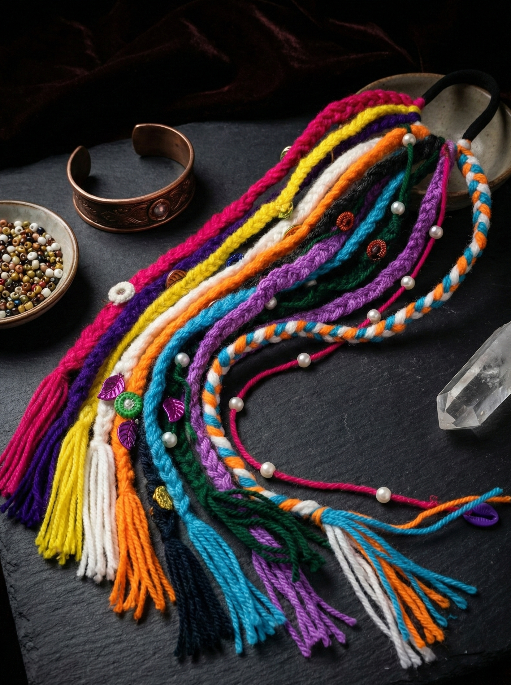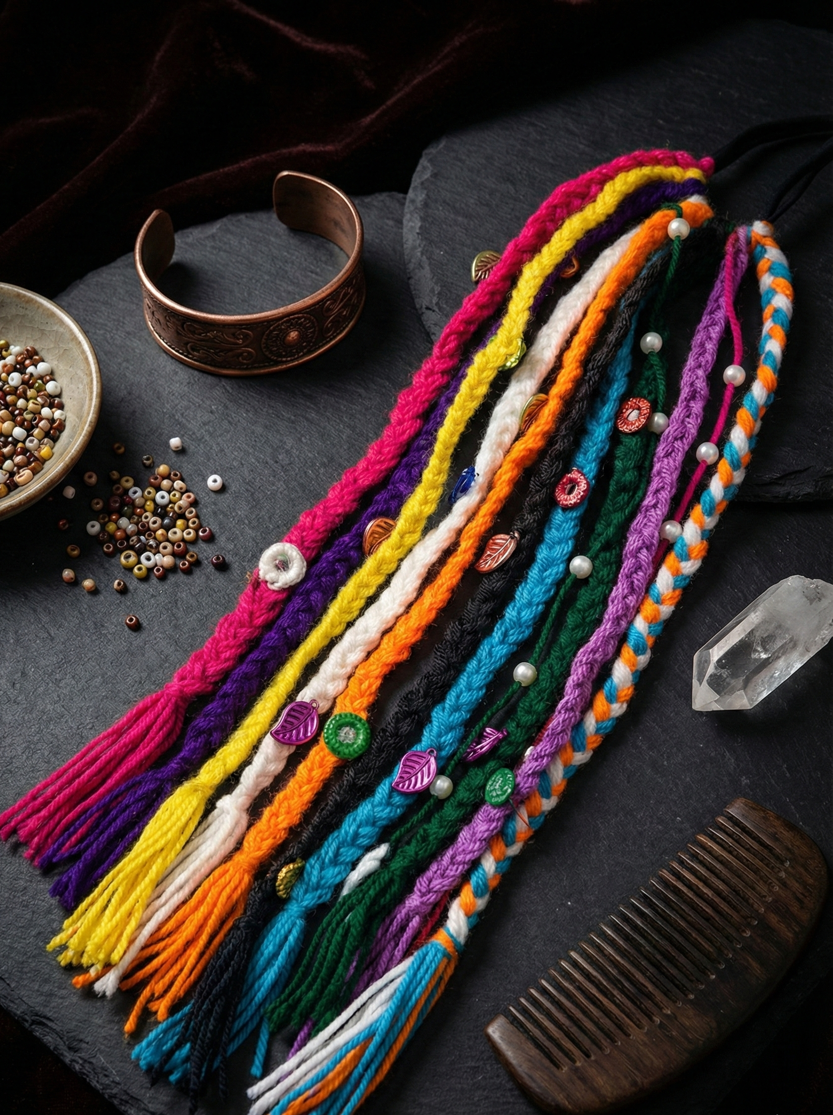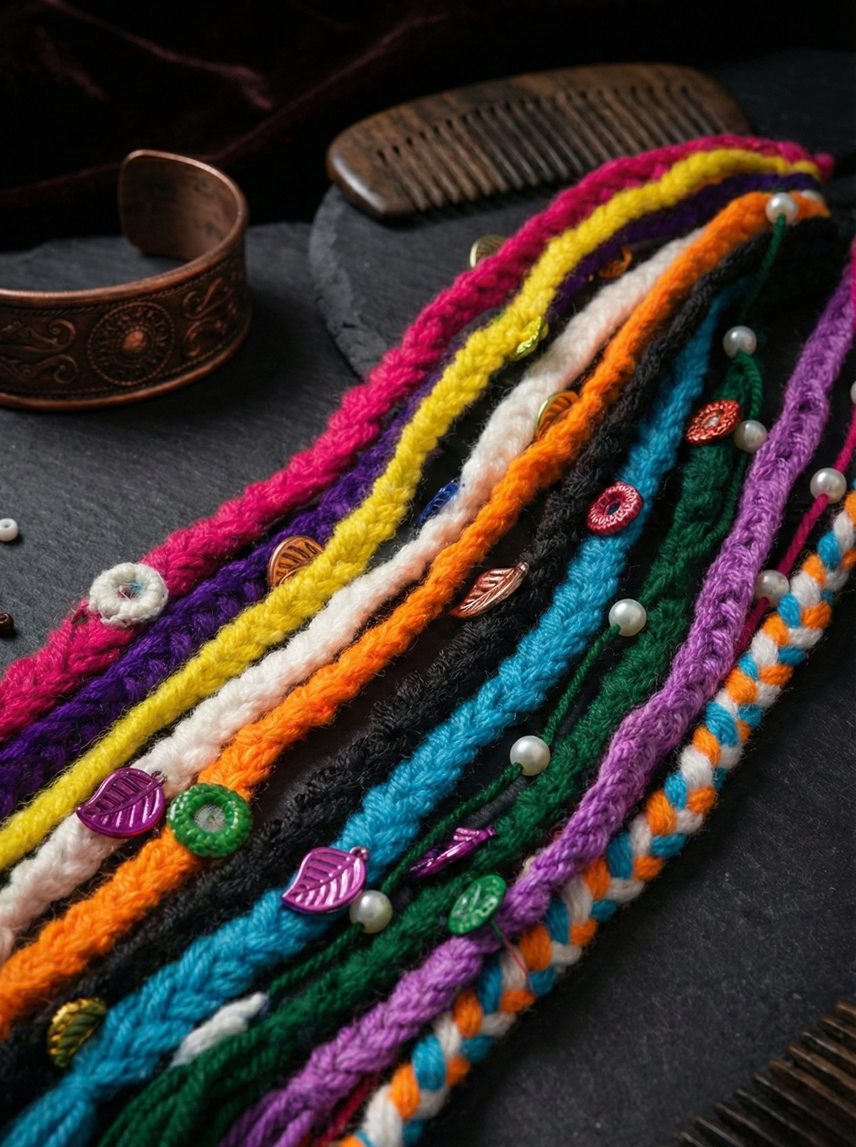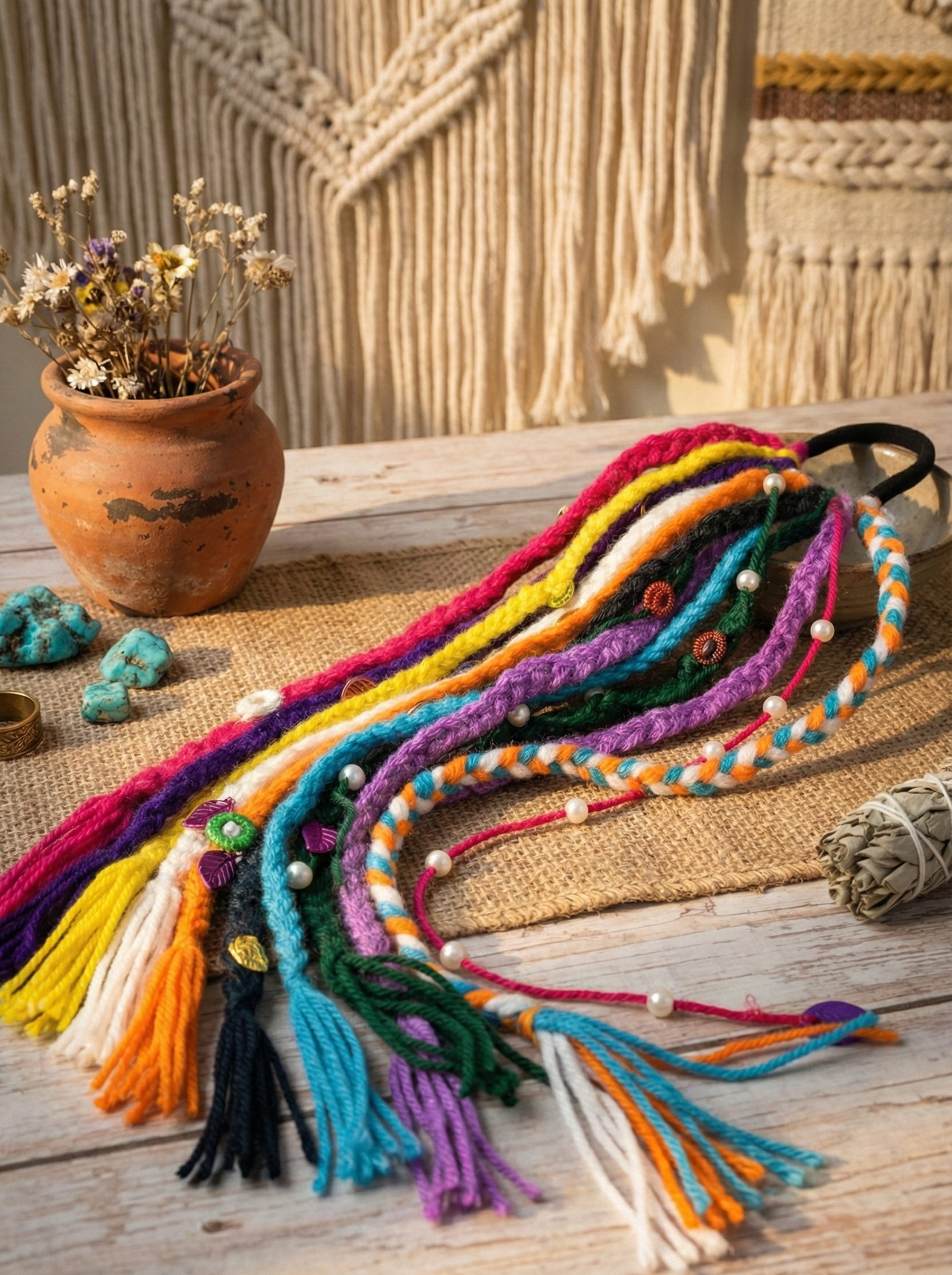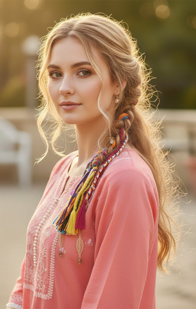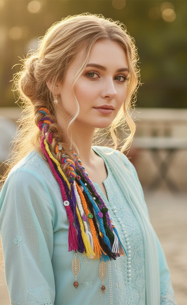 Discover our unique collection of handmade boho hair accessories, lovingly crafted from vibrant dhaga (thread). Each macramé and embroidered piece is a lightweight, one-of-a-kind work of art, perfect for adding an artisan touch to your free-spirited style.