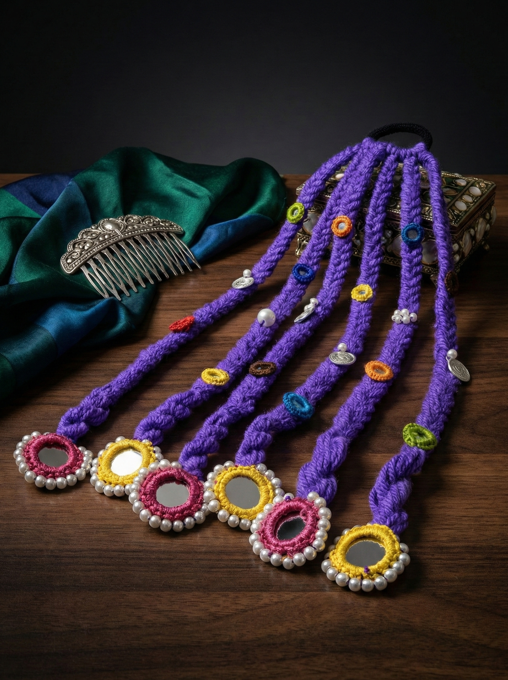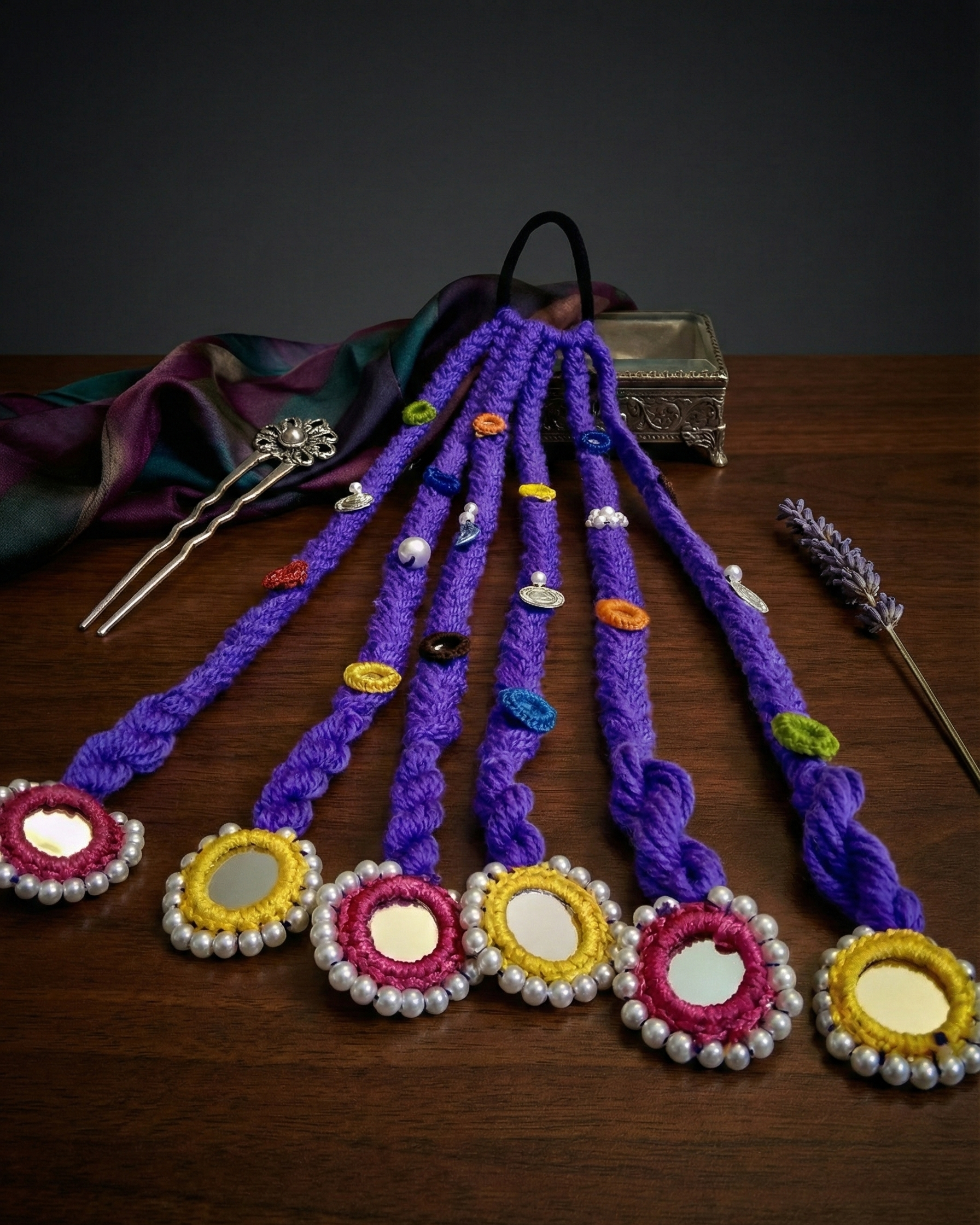 Discover our unique collection of handmade boho hair accessories, lovingly crafted from vibrant dhaga (thread). Each macramé and embroidered piece is a lightweight, one-of-a-kind work of art, perfect for adding an artisan touch to your free-spirited style.