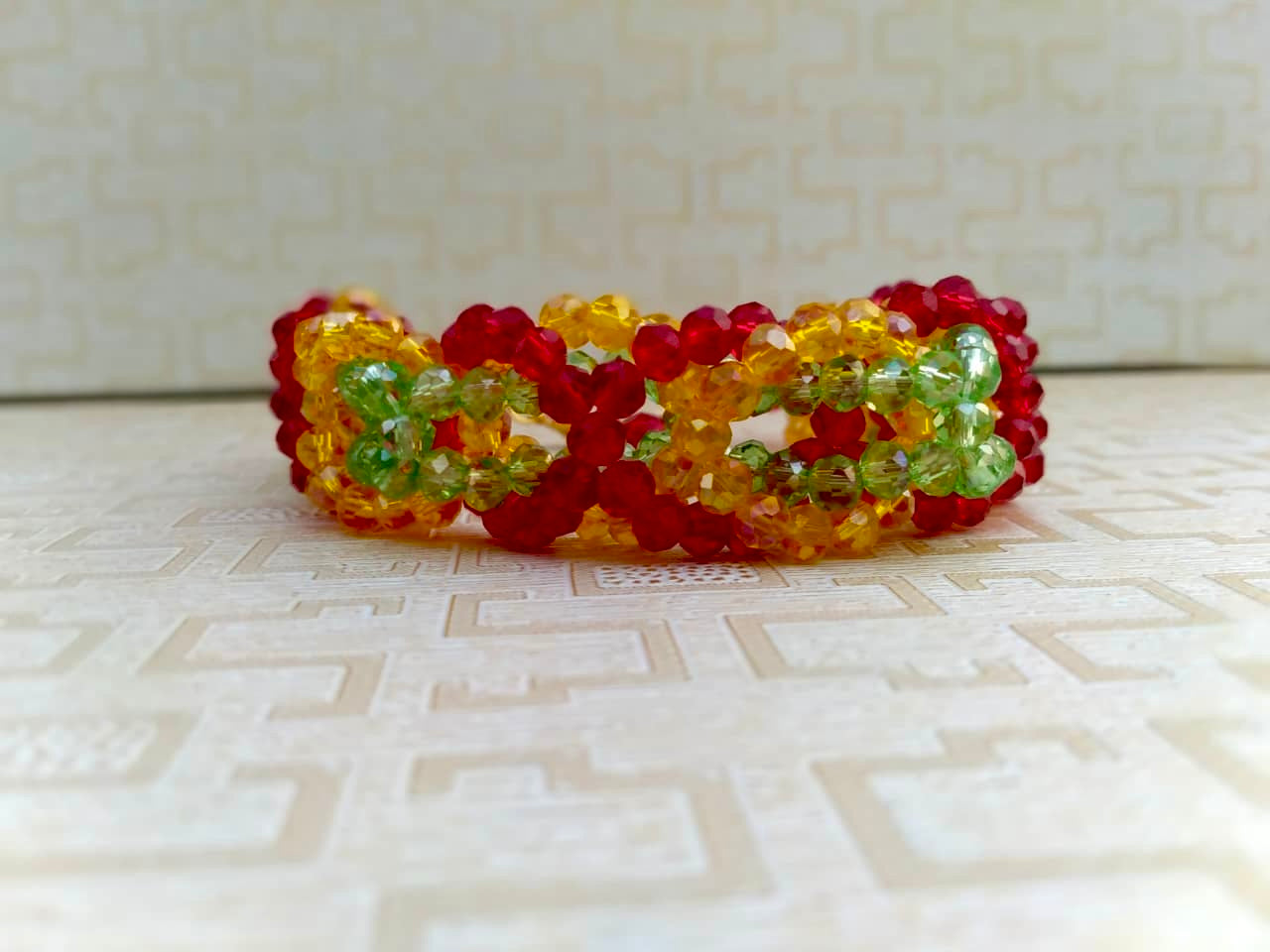 The Vibrant Trio bracelet features a harmonious blend of three vivid colors expertly combined to create a dynamic and stylish accessory. Handcrafted with precision, this bracelet adds a bold yet refined statement to any outfit, delivering both visual appeal and lasting quality for versatile wear.