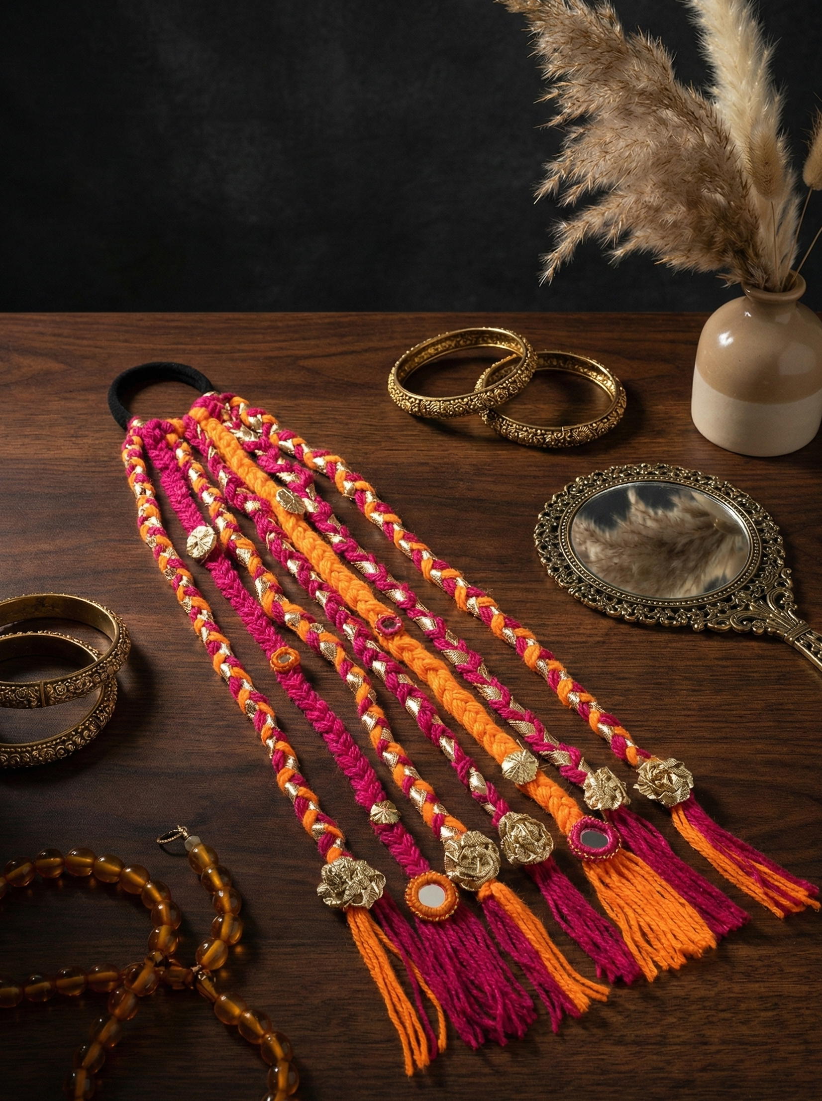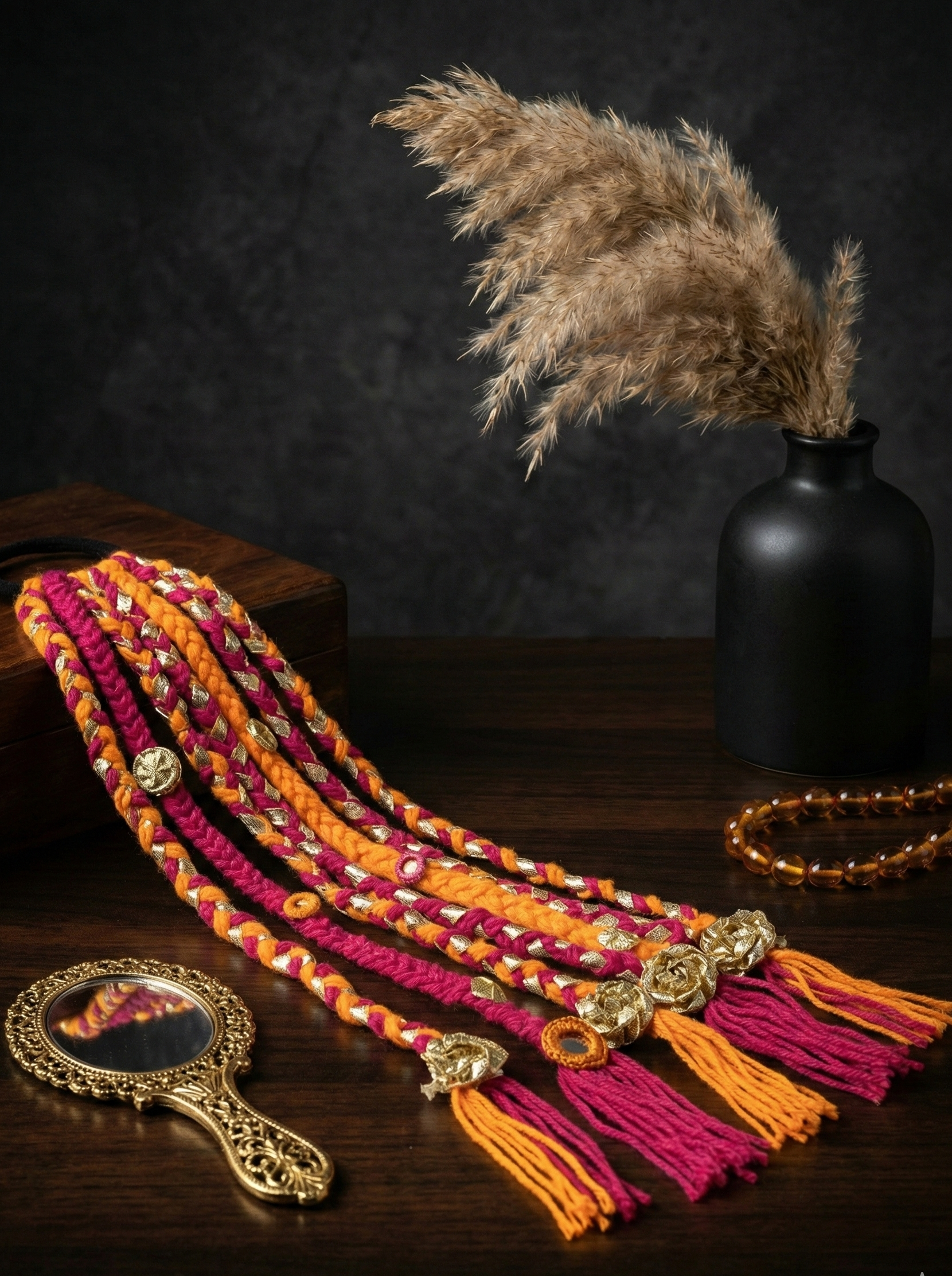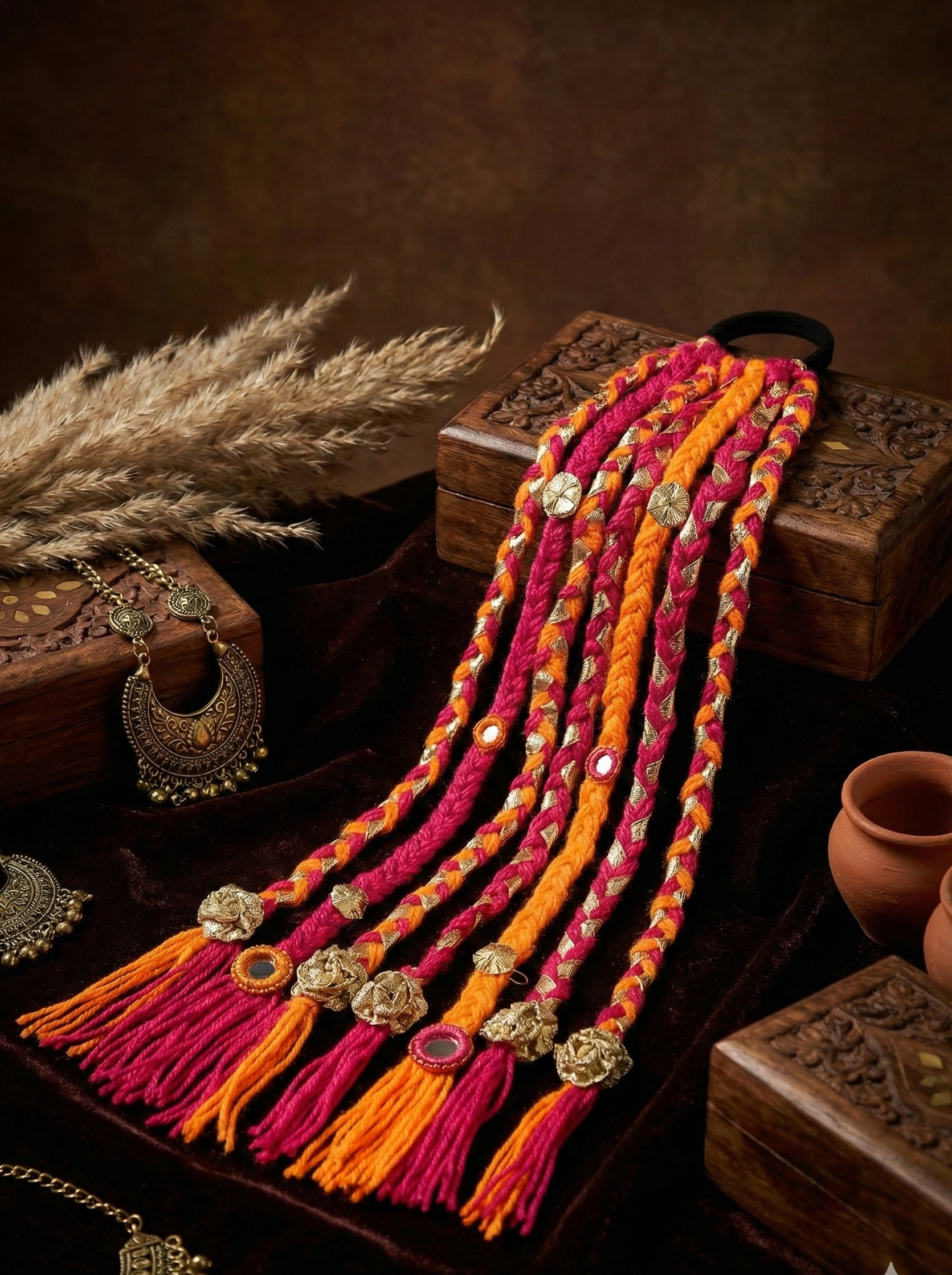 Discover our unique collection of handmade boho hair accessories, lovingly crafted from vibrant dhaga (thread). Each macramé and embroidered piece is a lightweight, one-of-a-kind work of art, perfect for adding an artisan touch to your free-spirited style.
