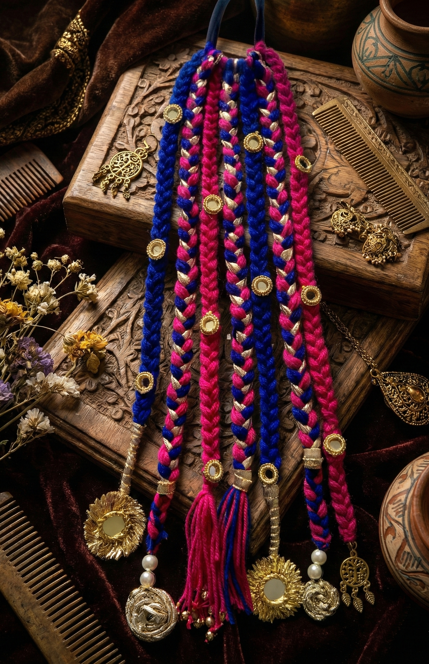 Discover our unique collection of handmade boho hair accessories, lovingly crafted from vibrant dhaga (thread). Each macramé and embroidered piece is a lightweight, one-of-a-kind work of art, perfect for adding an artisan touch to your free-spirited style.